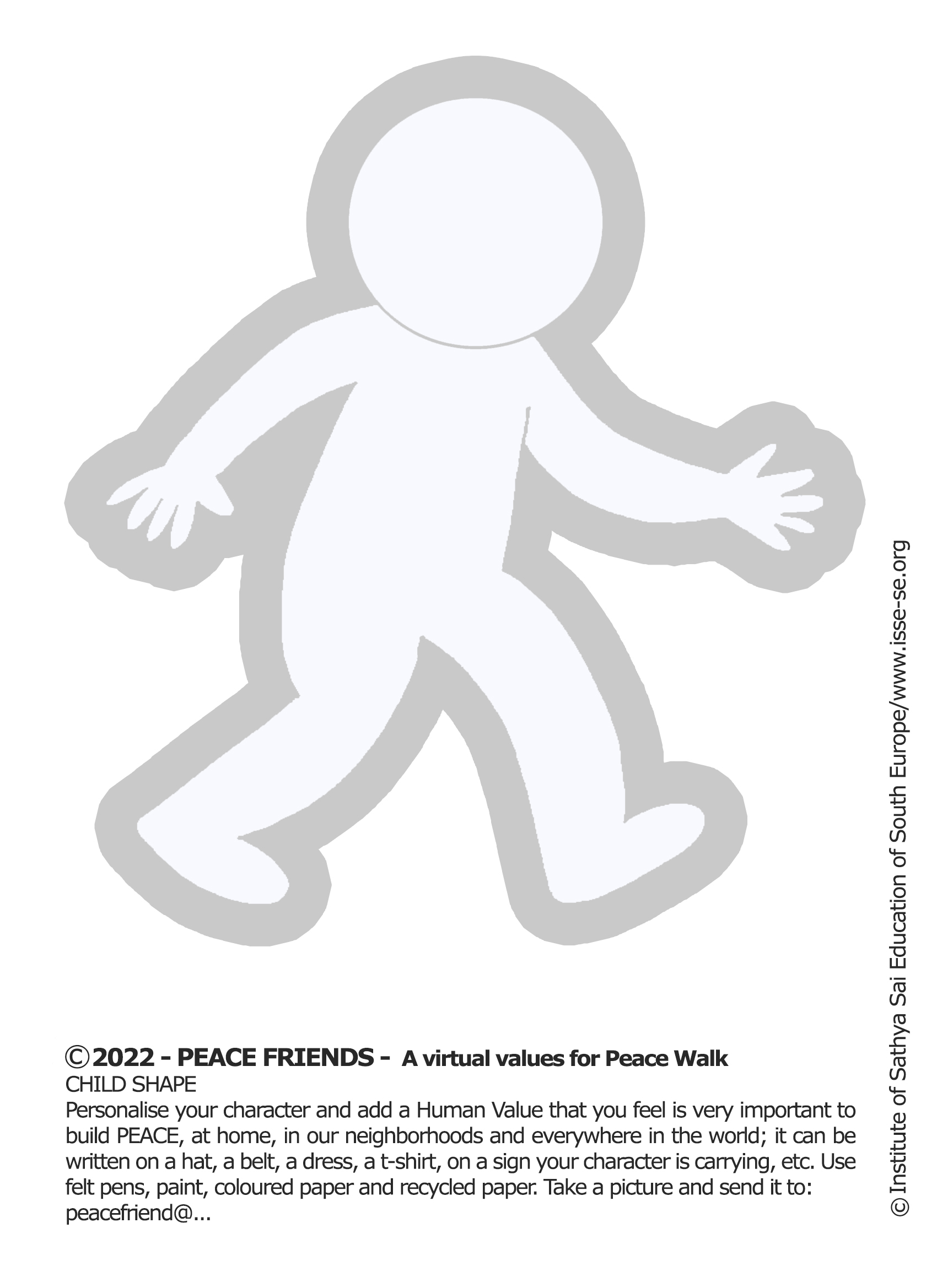 To participate in the PEACE FRIENDS project, you need a CHARACTER MODEL TEMPLATE. Below you will find the link to download all kinds of templates. Choose the one which tunes in with you! You will also find additional tempates for "Adult Peace Friends", and others that will help you personalise your character.